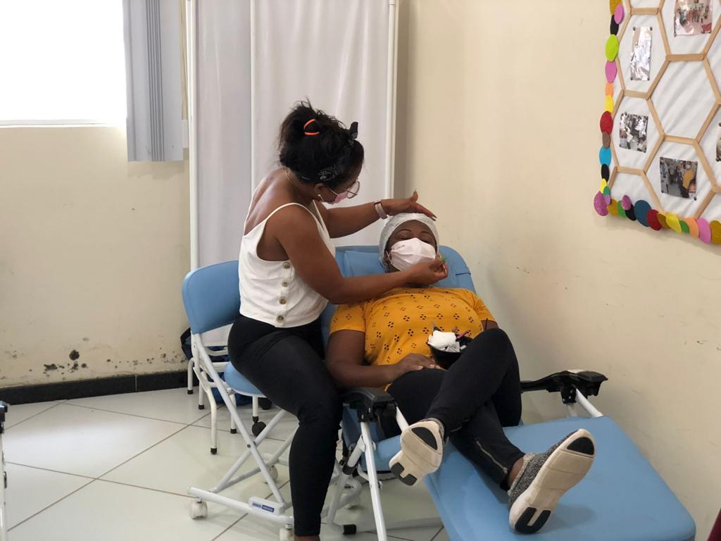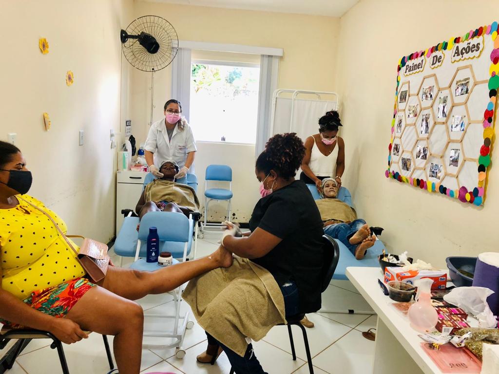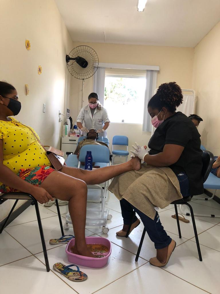 As ações com o cuidado da saúde do corpo se estenderam à saúde mental e não há melhor remédio do que se sentir bem consigo mesmo, proposta do spar da beleza, com direito à corte de cabelo, pintura de sobrancelha de henna, massagem nos pés e limpeza de pele. Uma iniciativa dos profissionais da atenção básica e saúde bucal para ajudar na autoestima.