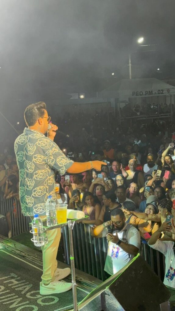 A noite teve como um dos pontos altos o show de Thiago Aquino, que levou milhares de foliões ao delírio com um repertório repleto de sucessos. Do romantismo à sofrência, o artista transformou a avenida em um grande coral a céu aberto, mantendo o público conectado do início ao fim da apresentação.