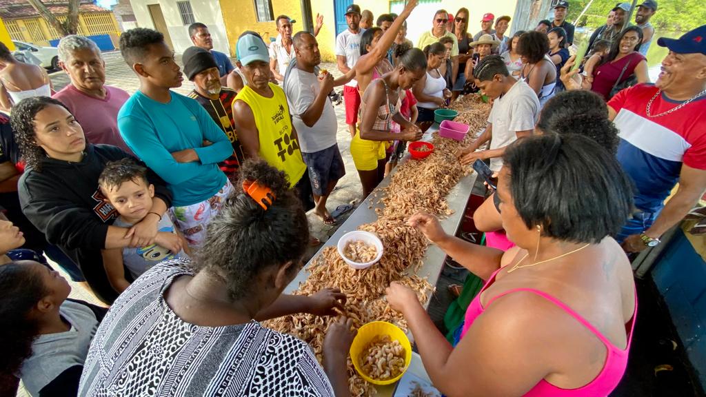Completando o momento de diversão, após a corrida de bateira, na praça do Peroá o público acompanhou a acirrada competição da descasca de camarão. As marisqueiras encararam quase 20 quilos de camarão e em questão de minutos, reduziram o crustáceo a pequenos filés. No último ano, a marisqueira Patrícia “Pepeta” foi a ganhadora com grande diferença das demais, mas nesta edição foi ultrapassada pela irmã. A descasca de camarão em 2023 teve Lucilene “Véia” como ganhadora e Patrícia “Pepeta” ficou com o título de vice.